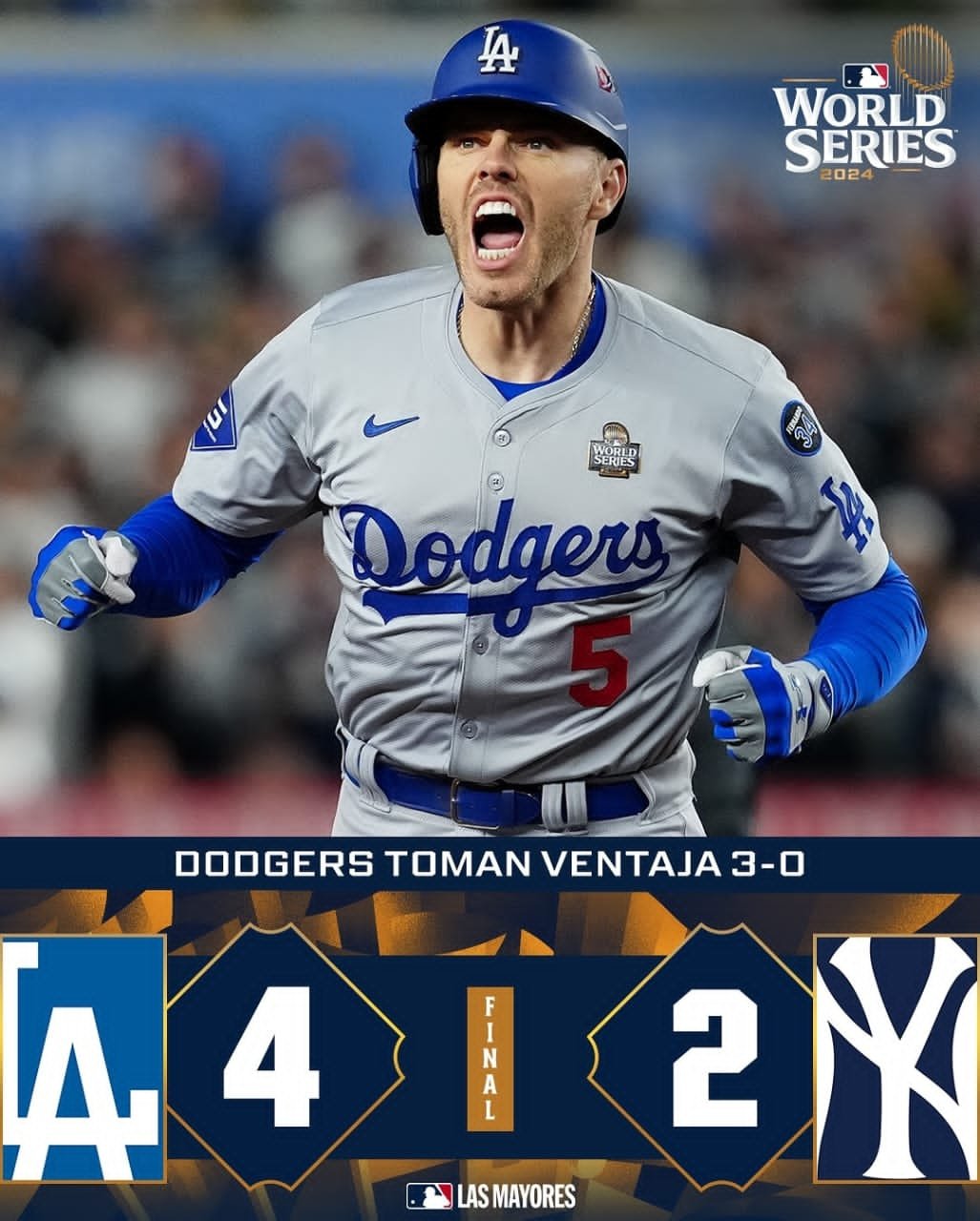 Freddie Freeman que anda verdaderamente encendido la sacó en el mismo primer inning, para darle la ventaja desde temprano a los «Angelinos». Enrique «Kike» Hernández remolcó una más para el local. Alex Verdugo con un soberbio cuadrangular traería a la goma las dos de los «Mulos». De esta manera los «Bombarderos del Bronx» tratarán de emular la proeza der a los Medias Rojas de Boston del 2004, quienes son los únicos en regresar de un 0-3. En aquella oportunidad justamente ante los Yankees de Nueva York. Por otra parte los «Bums» quieren celebrar lo antes posible y concretar la barrida para conseguir su campeonato mundial número 8 en toda su longeva historia.
