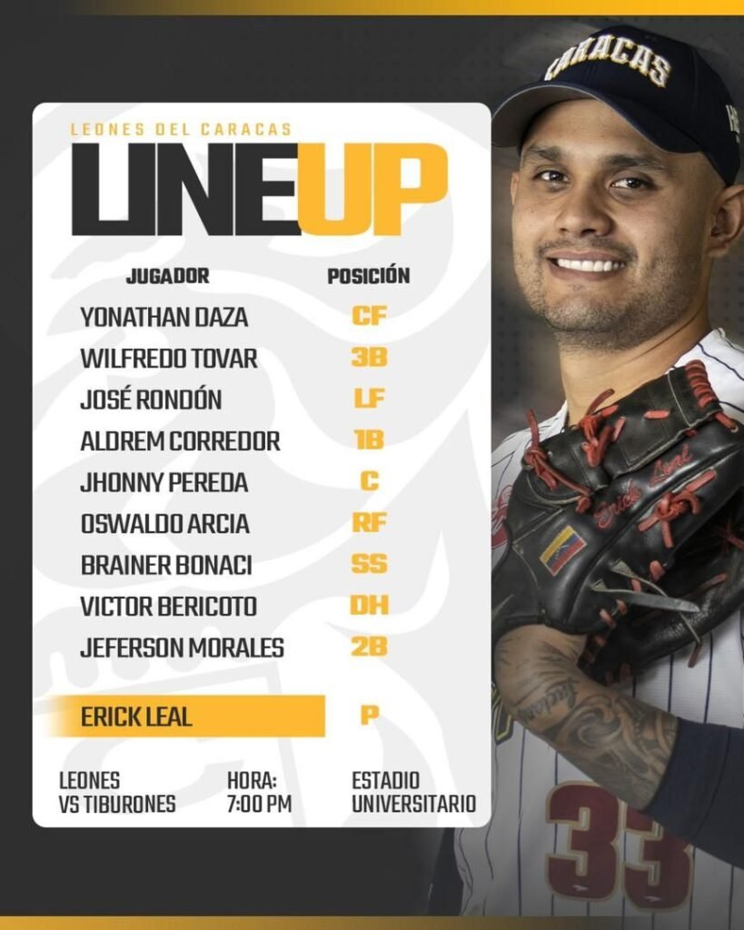 Por Leones abrirá Erick Leal, en su debut de la temporada 2024-25. En Triple A de los Yankees dejó efectividad de 5.61, con récord de 8-10 en 126.2 entradas. Los melenudos vienen de caer 6-5 precisamente ante su rival de hoy, los escualos, y buscarán su primera victoria en esta serie particular. Su récord es 3-2, por encima de .500.