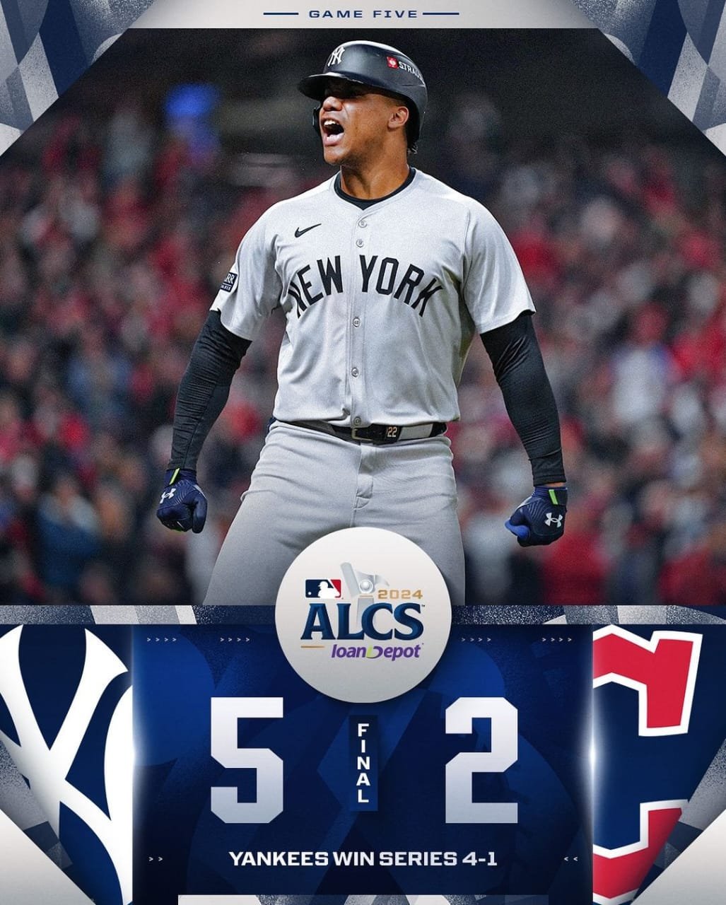 La «Fiera» Juan Soto sería el héroe del encuentro al conectar tremendo bambinazo de vuelta entera y empujar 3 carreras para darle la ventaja definitiva a los «Mulos» diferencia que Cleveland no podría remontar, Gleyber Torres se fue de 5-2 con anotada. Giancarlo Stanton fue nombrado jugador más valioso de la serie de campeonato pegando 4 jonrones e impulsando 7 rayitas. De esta manera los bombarderos del Bronx esperan entre Dodgers de Los Ángeles o Mets de Nueva York. Por un lado la serie mundial que todos los fanáticos quieren observar y por otro la serie del Subway que ya tuvo lugar en el 2.000 dando como vencedores a los Yankees.