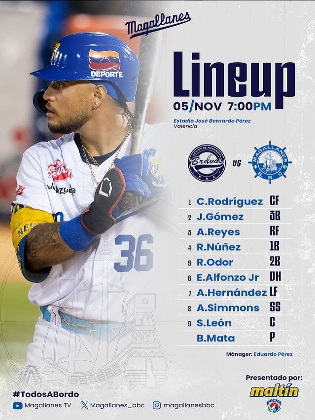 Por la jornada de este miércoles, se disputará el segundo duelo de la serie en el Estadio José Bernardo Pérez de Valencia entre los Bravos de Margarita (@bravosmargaritaoficial) y los Navegantes del Magallanes (@magallanesbbc).