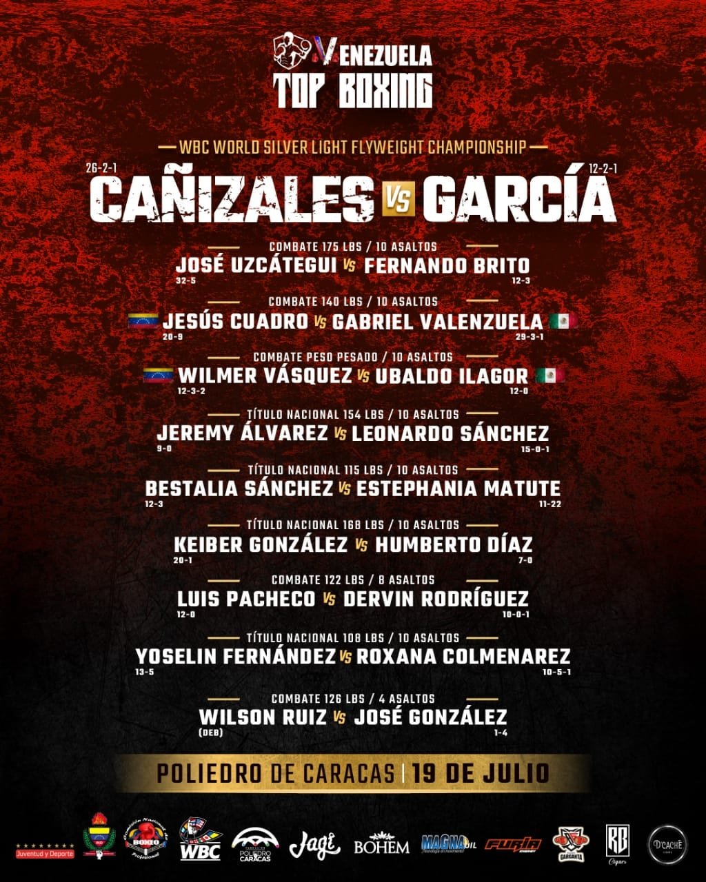 🥊🇻🇪 @vzlatopboxing confirmó los nueve combates que se disputarán el próximo 19 de julio en el emblemático Poliedro de Caracas, resaltan figuras como los dos excampeón del mundo, Carlos Cañizales y José “Bolivita” Uzcátegui. Además, de los prospectos Jeremy Álvarez y Leonardo Sánchez