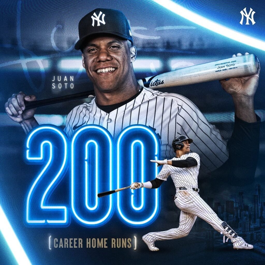 Juan Soto llegó a 200 bambinazos de vuelta entera en su joven y muy prometedora carrera, el jardinero de los Yankees de Nueva York. Sigue repartiendo batazos con los «Mulos» y se convierte en uno de los pocos peloteros en la historia en conectar jonrón en los 30 estadios de las grandes ligas.