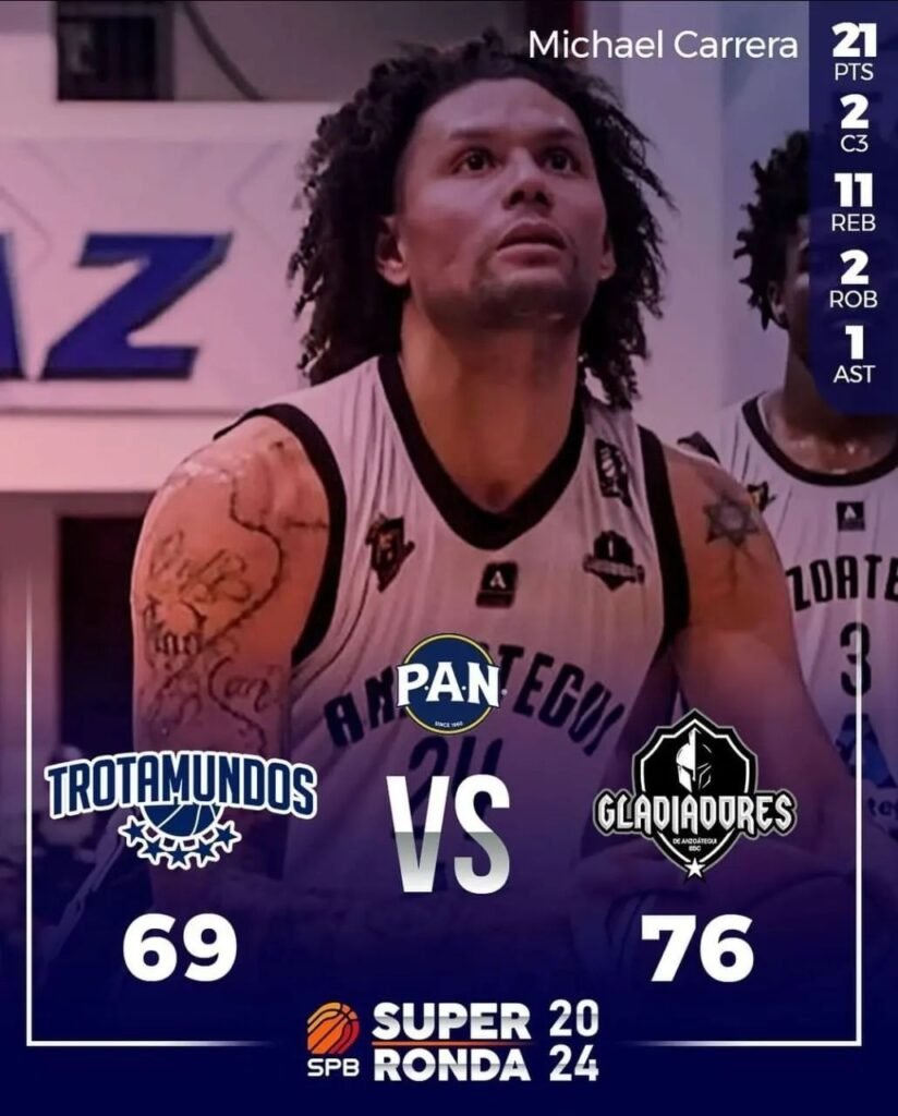 En el Fórum de Valencia, Gladiadores de Anzoátegui se impuso al local Trotamundos de Carabobo por pizarra final de 76-69. El criollo, Michael Carrera la principal arma ofensiva de la «Armadura Anzoatiguense» registrando un doble-doble de 21 puntos y 11 rebotes, mientras que Gregory Vargas aportó 12 puntos, 6 rebotes y 4 asistencias. Por el «ExpresoAzul», David Cubillán anotó 17 puntos, tomó 1 rebote y repartió 3 asistencias.