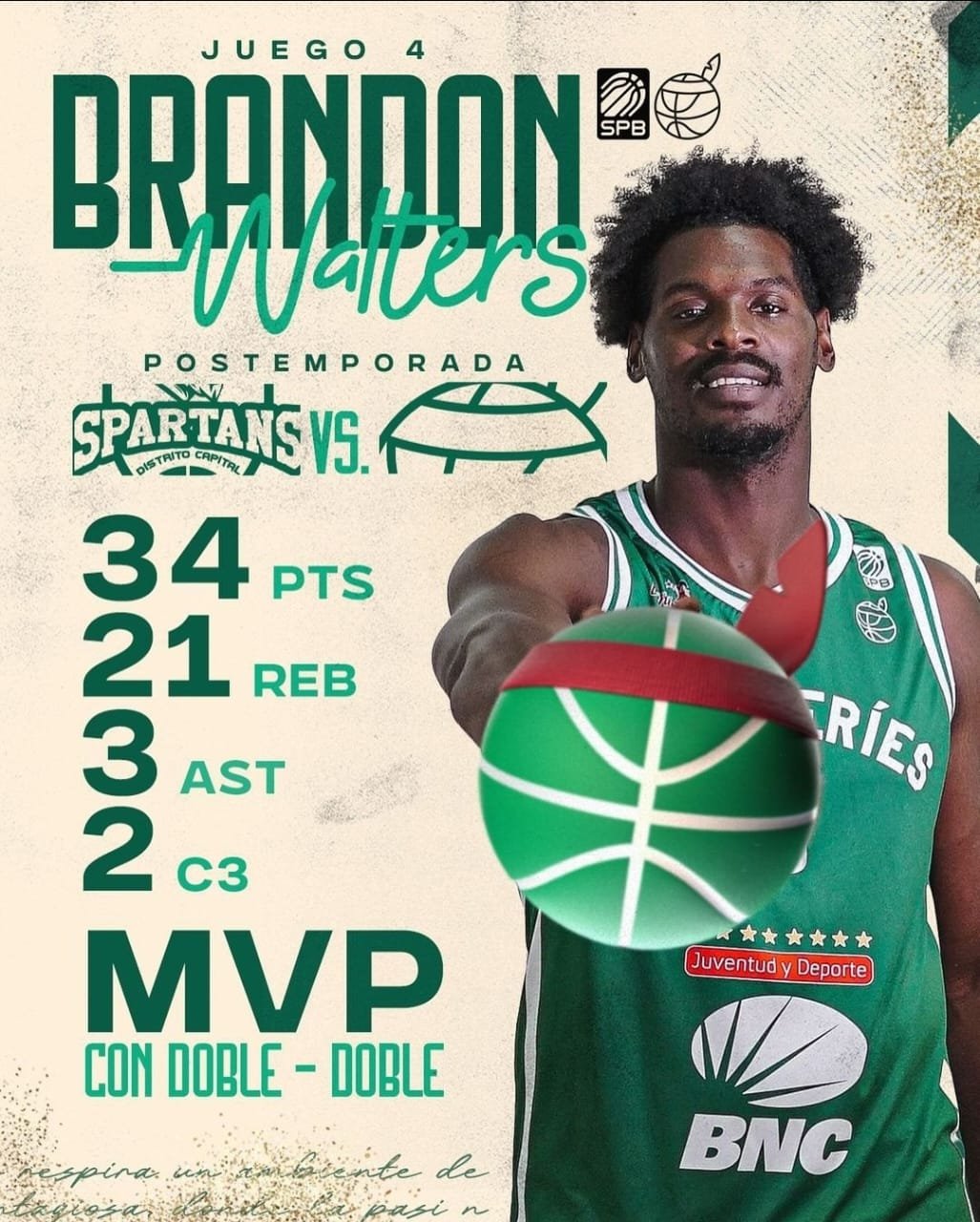 El importado Brandon Walters, fue el MVP del encuentro con un colosal doble-doble de 34 puntos y 21 rebotes, además repartió 3 asistencias, robó un balón y dio un tapón. «La Roca» Pedro Chourio sumó 18 puntos con 7 rebotes y 4 triples.