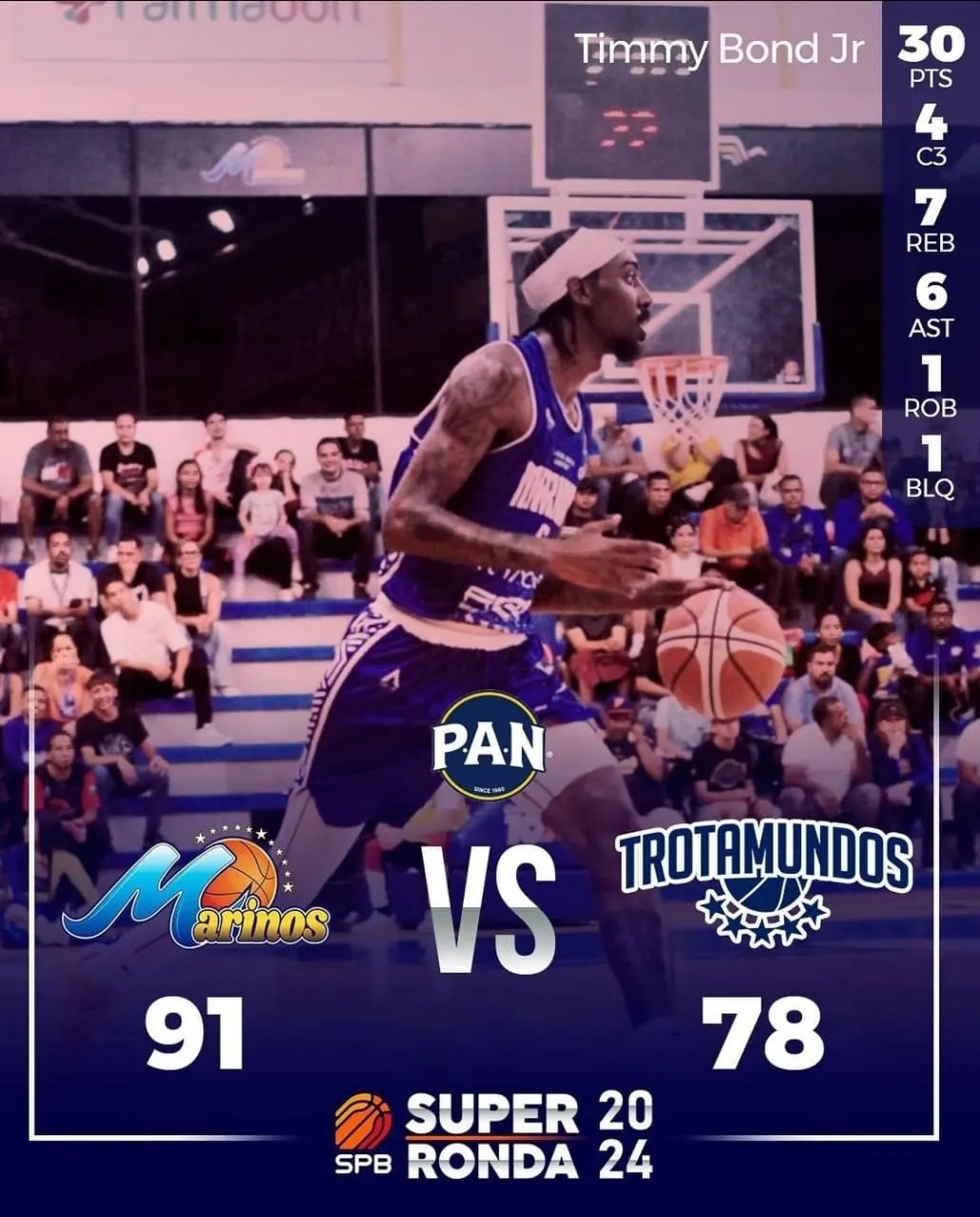En el otro encuentro, Marinos de Oriente sumó su primera victoria en la Súper Ronda. El «Acorazado Oriental» derrotó a Trotamundos de Carabobo 91-78.
