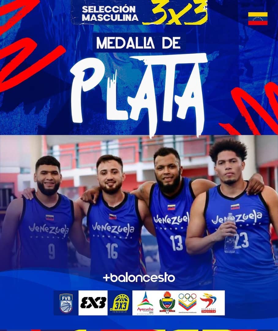 La selección nacional de baloncesto de 3×3, ganó este viernes medalla de plata en los Juegos Bolivarianos del Bicentenario Ayacucho 2024. El conjunto nacional perdió  21-11 ante la selección de República Dominicana en la final del torneo.