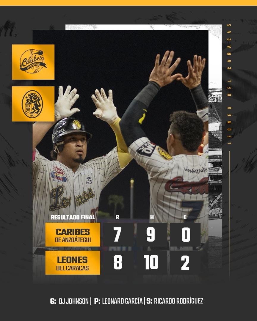 • Leones: Aldrem Corredor 4 CI (grand slam) y juego de 4 hits; José Rondón jonrón y 2 CI.
