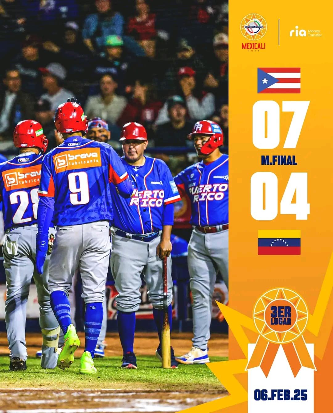 Los Cardenales de Lara cayeron 4-7 ante los Indios de Mayagüez en el partido por el tercer lugar de la Serie del Caribe 2025, celebrado en el Estadio Nido de las Águilas, en Mexicali, México.