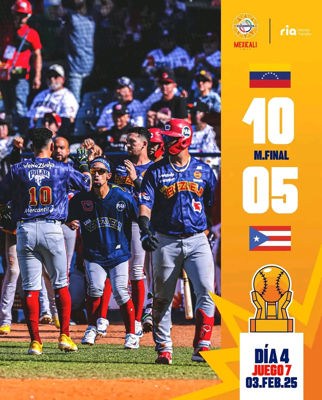 Al vencer a los Indios de Mayagüez de Puerto Rico con un marcador de 10-5. El partido fue un respiro para los venezolanos, quienes habían sufrido dos derrotas consecutivas en sus primeros encuentros del torneo.