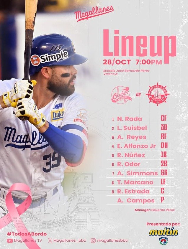 Abriendo la tercera semana de acción en la Liga Venezolana de Beisbol Profesional (LVBP), los Navegantes del Magallanes (@magallanesbbc) se ven las caras ante Caribes de Anzoátegui (@caribesdeanzoategui) en el Estadio José Bernardo Pérez de Valencia.