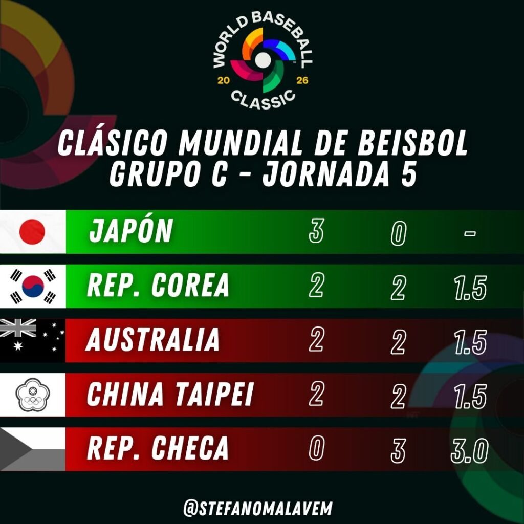 Con la Fase de Grupos culminada, ya se conocen los ocho clasificados a los cuartos de final del Clásico Mundial de Beisbol y los cuatro cruces de cuartos de final.