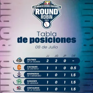 About The Author Jose Martinez See author's posts Navegación de entradas Tabla de posiciones Round Robin de la Liga Mayor de Béisbol Profesional 🇻🇪 Resultados de la jornada de hoy en el Round Robin de la Liga Mayor