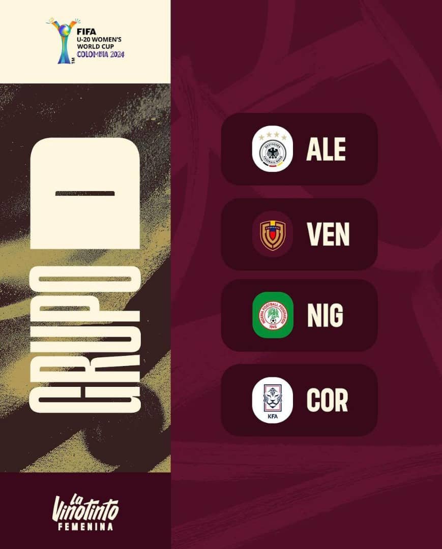 La selección venezolana femenina sub-20 se enfrentará a sus similares de Alemania, Nigeria y Corea del Sur en el grupo «D», del mundial de la categoría.