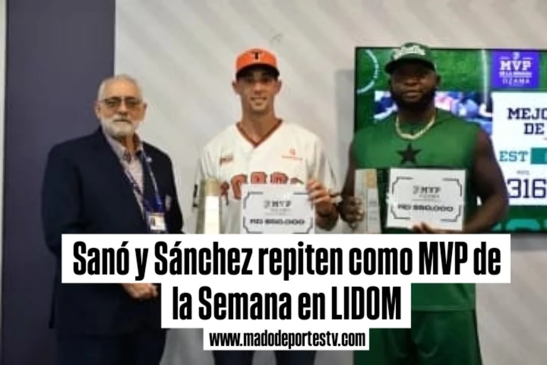 SANTO DOMINGO.– Miguel Ángel Sanó, de las Estrellas Orientales, y Aaron Sánchez, de los Toros del Este, repitieron como los más destacados de la semana al conquistar por segunda ocasión consecutiva el premio MVP de la Semana de la Liga de Béisbol Profesional de la República Dominicana (LIDOM), correspondiente al período del 21 de octubre al 2 de noviembre.