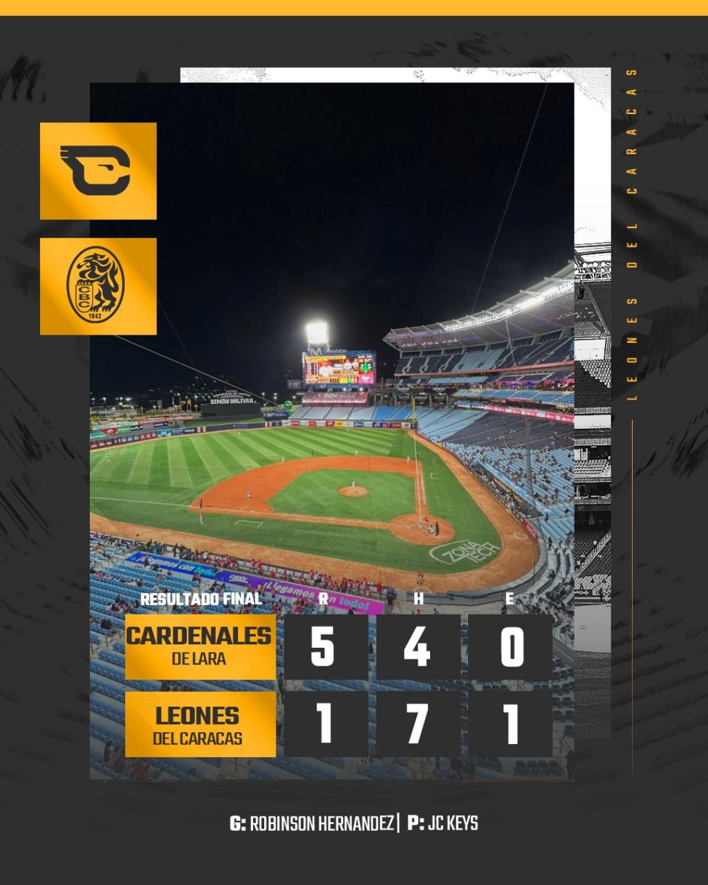 Con un duelo de pitcheo se definiría el segundo juego de la jornada entre Leones del Caracas (@leones_cbbc) y Cardenales de Lara (@cardenalesdice).