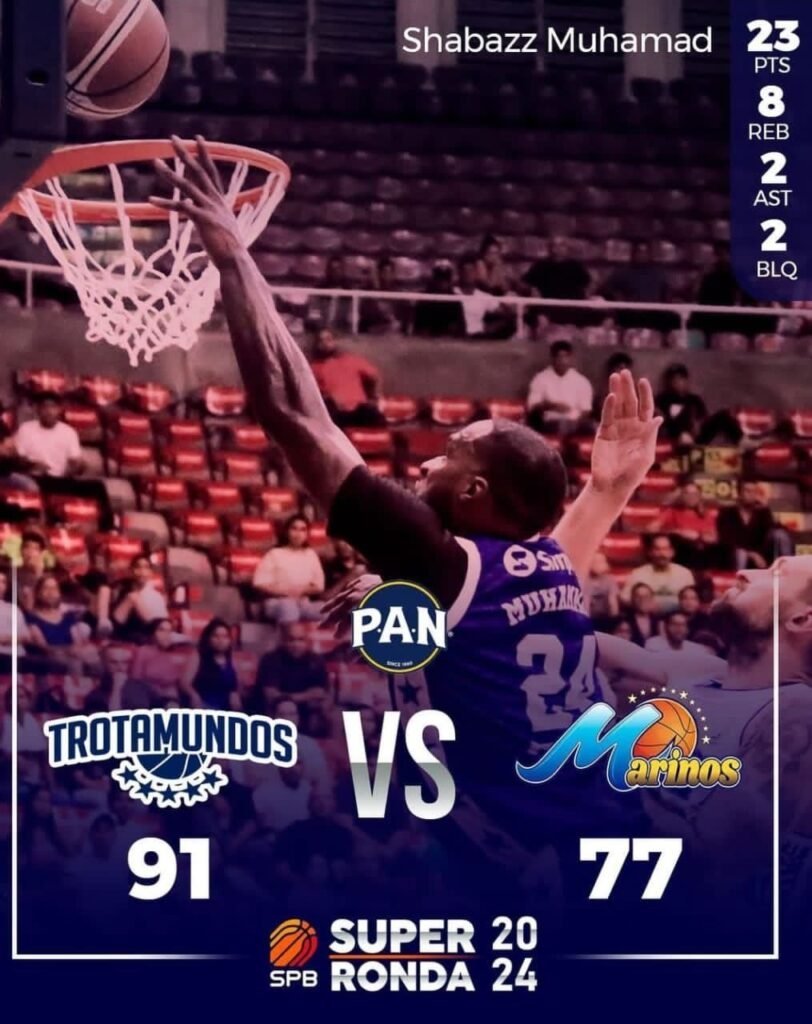 Trotamundos de Carabobo derrotó a Marinos de Oriente en el Fórum de Valencia por marcador final de 91-77.sigue con vida en la super ronda de la SPB 2024.