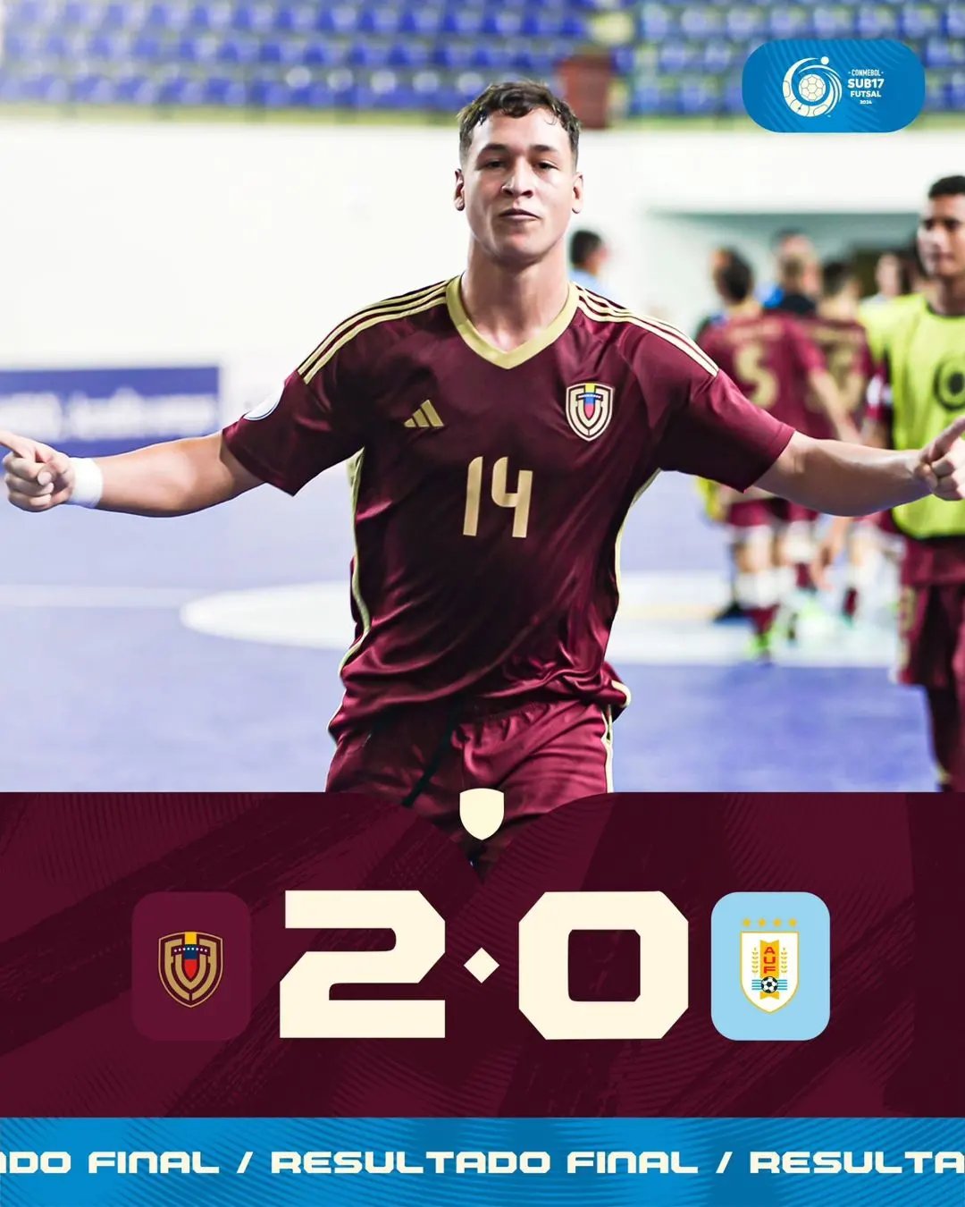 Nueva victoria para la selección nacional Sub-17, en el premundial de la categoría. En ésta ocasión los chamos dieron cuenta del equipo «Charrúa» con un marcador de 2 por 0, gracias a los goles de Carlos Neus y David Artigas que ayudaron a mantener el invicto en la fase de grupos.